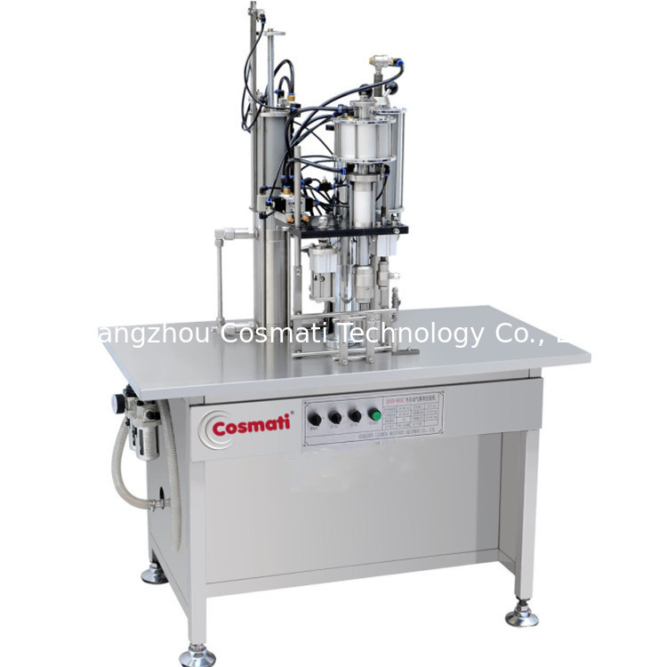 CM-QWJ-B aerosol filling machine, in the design of the contents will be semi-automatic filling machine, semi-automatic sealing machine, semi-automatic filling machine propellant (including booster pump) combined with the completion of a work platform, and any can work alone. Any two machine interaction work, can be adjusted. This Semi-automatic aerosol filling machine is usually used on aerosol filling. It is widely used in filling perfume, body spray, spray paint, air freshener and so on.
